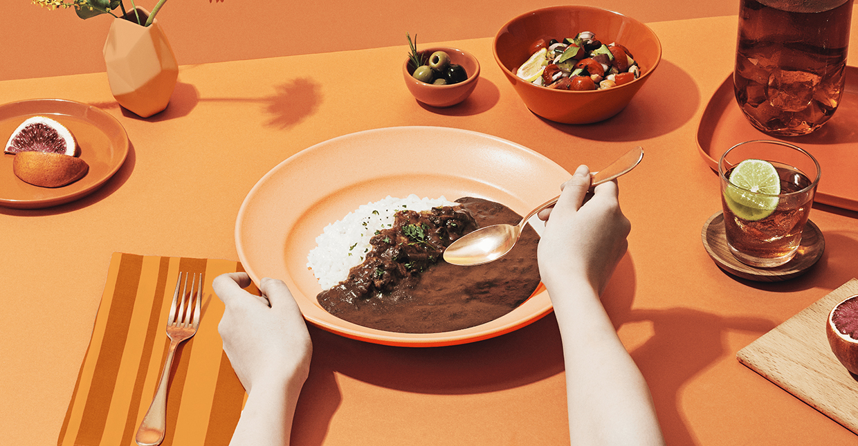 北海道産発酵バターとクリームのコク、香味野菜の旨みとスパイスの香り広がる。(中辛)